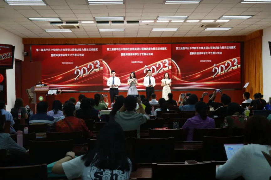 9月24日上午,第三届昌平区中学师生在线英语口语表达能力展示活动颁奖暨教师演讲和学生才艺展示活动在昌平区教师进修学校报告厅圆满举行。本次昌平区中学师生在线英语口语表达能力展示活动自2023年暑期启动以来,9200余名师生参与,涌现出一大批英语口语能力优秀的师生,展示了本区师生良好的英语专业水平与学习韧劲,彰显了昌平区英语教育教学的浓郁氛围和可期未来。