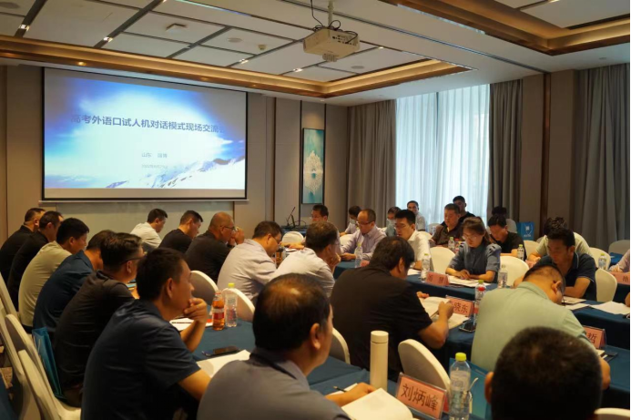 为适应新高考改革的需要,进一步提高学生外语口语的语言技能水平,更好地推广高考外语口试人机对话模式,8月25日,淄博市教育招生考试院联合科大讯飞举办了山东省高考外语口试人机对话模式现场交流会。会议由淄博市教育招生考试院院长周晶元主持,山东省考试院及济南、青岛等10个地市考试院共同参与。