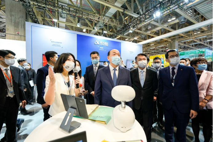 2022年10月20日上午,第27届澳门国际贸易投资展览会(MIF)在澳门开幕,中华人民共和国澳门特别行政区行政长官贺一诚、澳门特别行政区经济财政司司长李伟农、浙江省副省长卢山一行来到科大讯飞展区,现场体验并充分肯定了科大讯飞智慧教育、全球中文学习平台、人工智能创新教育、讯飞听见等产品,对讯飞人工智能技术助力多彩澳门建设和科技人才储备充满期待。