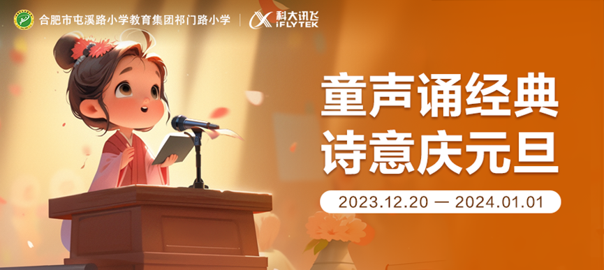 为深入学习宣传贯彻党的二十大精神,全面贯彻党的教育方针,落实立德树人根本任务,以阅读启迪智慧、引领成长,进一步推进书香校园建设,合肥市屯溪路小学教育集团祁门路小学联合科大讯飞AI朗读亭小程序于2023年12月20日开展“童声诵经典,诗意庆元旦”线上朗读活动。