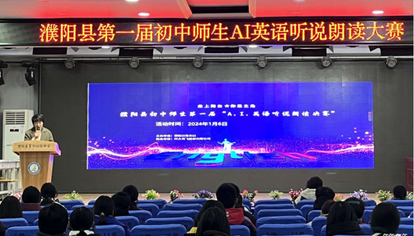 为促进师生素养提升和全面发展,提高信息化技术在英语学科中的深入应用,近日,濮阳县教育局联合科大讯飞组织了濮阳县第一届初中师生“AI英语听说朗读大赛”。全县初二年级学生参与初赛海选,最终56名学生、30名教师进入决赛。1月6日,大赛决赛在濮阳县第四初级中学顺利举行,濮阳县教育局党组成员副总督学常春英、濮阳市教育体育事业发展中心义务教育教研室副主任马树余、濮阳县中小学教研室负责人孟亚、以及县教研室王存国老师、英语教研员马俊霞老师出席本次活动。