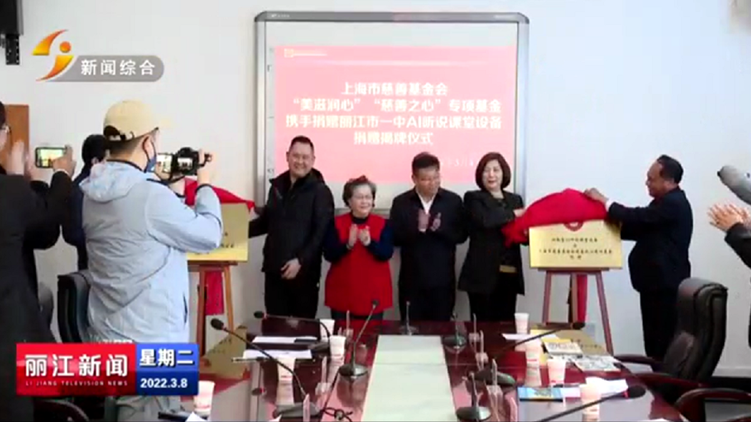 3月8日,丽江新闻综合频道对上海市慈善基金会“美滋润心”“慈善之心”专项基金携手捐赠丽江市一中AI听说课堂设备揭牌仪式相关新闻进行了报道,获得当地广泛关注。
