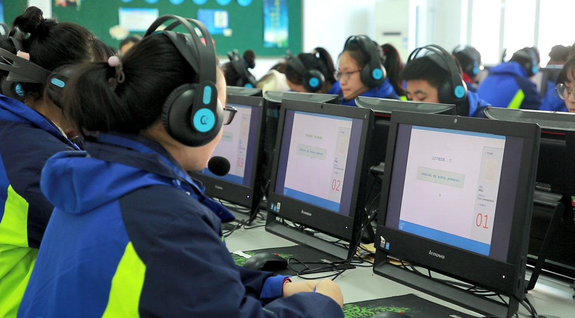 近日,一场形式新颖的英语人机对话考试在青岛西海岸新区举行,区别以往的“人人对话”测评形式,全区七、八、九年级48000多名考生坐在计算机前戴上专用耳麦,由计算机播放听力录音和口语试题,考生通过麦克风作答。
